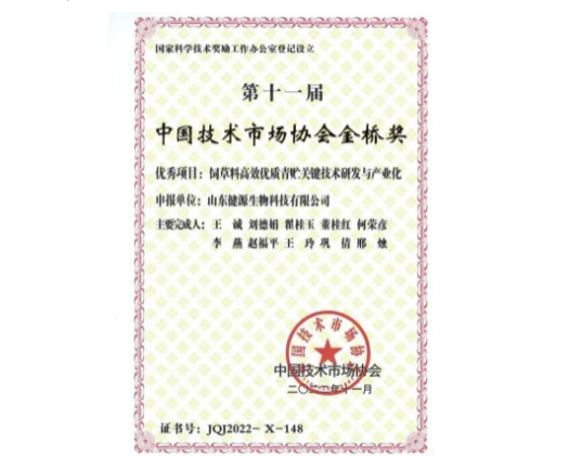 近日,在中國發(fā)明協(xié)會舉辦的“2022年度第三屆發(fā)明創(chuàng)業(yè)獎成果獎”全國評比中,山東健源生物科技有限...