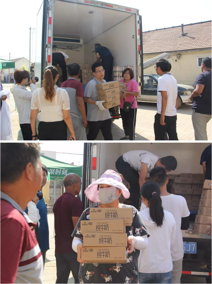 一方有難八方支援,災(zāi)難發(fā)生后中國奶業(yè)公益群向群內(nèi)發(fā)出倡議,呼吁自愿參與為災(zāi)區(qū)奉獻(xiàn)愛心,奶業(yè)各企業(yè)紛紛行動(dòng)起來,共收到86家企業(yè)和個(gè)人的愛心善款。災(zāi)區(qū)人民恢復(fù)家園最需要的是溫飽和健康。9月8日,中國奶業(yè)公益群代表、山東健源生物邢燭等愛心人士攜手新希望乳業(yè)的相關(guān)人員到壽光市上口鎮(zhèn)趙王南樓后村,為災(zāi)區(qū)人民送去愛心牛奶物資,為受災(zāi)群眾提供營養(yǎng)補(bǔ)給,幫助受災(zāi)群眾重建美好家園。