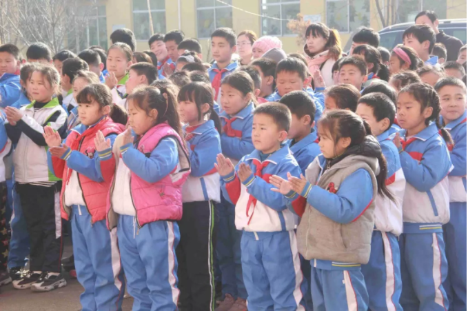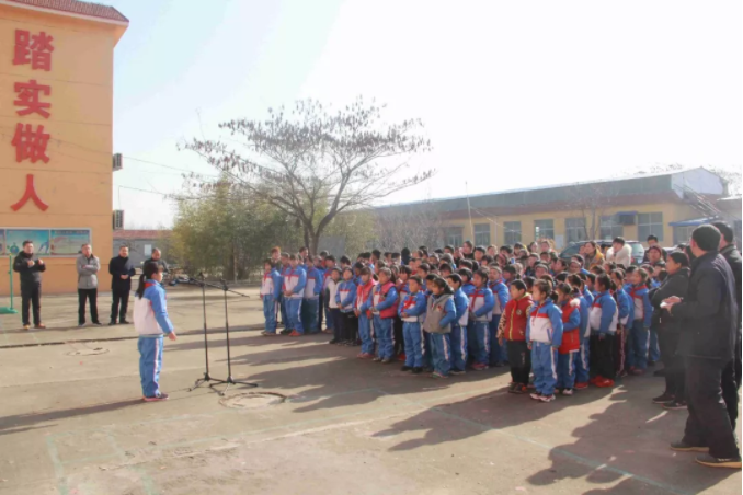 11時整,全校老師和同學們相聚在學校操場,愛心捐贈活動正式開始,出席本次捐贈活動的有:九三學社的劉彥濤秘書長、侯家華主委、泰安市化馬灣鎮教委彭主任與健源生物董事長王誠先生、總經理助理兼辦公室主任王玲女士。學校張校長對九三學社與山東健源生物科技有限公司的捐贈表示感謝,感謝九三學社以及社會各界對學校教育的關注和支持,感謝在寒冬里送來溫暖和祝福。并告誡全校師生要懂得感恩,將這份愛心傳遞下去。