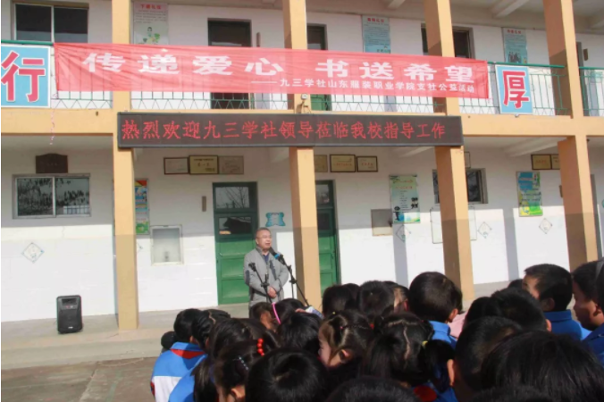九三學社劉彥濤秘書長代表捐贈方講話,他表示孩子門是祖國的未來和希望,下一代的健康成長是社會關注的重點問題,希望孩子們能夠多讀書,豐富知識面,知識就是力量,通過知識改變命運,鼓勵孩子們要好好學習,將來有一個美好的未來,有能力去幫助他人、感恩社會,最后對學校的發展和孩子們的未來送上了祝福和期許。