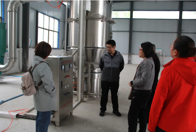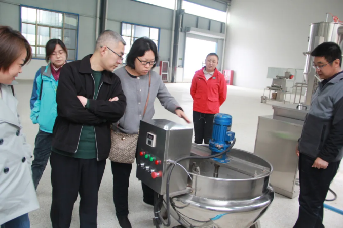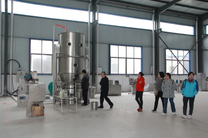 山東農(nóng)業(yè)大學(xué)劉建柱教授和藥學(xué)系老師們參觀了公司的科技研發(fā)中心、生產(chǎn)車間等,邢主任對廠區(qū)內(nèi)的環(huán)境設(shè)施和運作流程、工藝流程等進行了講解。