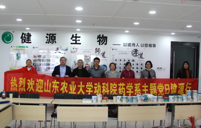 2021年4月22日,山東農(nóng)業(yè)大學(xué)劉建柱教授和山東農(nóng)業(yè)大學(xué)動科院藥學(xué)系老師們專程來到山東健源生物科技有限公司參觀交流,對我們的產(chǎn)品和技術(shù)進行指導(dǎo),山東健源生物王誠王總、外宣部邢燭主任熱情接待并陪同參觀公司生產(chǎn)車間、科技研發(fā)中心等。