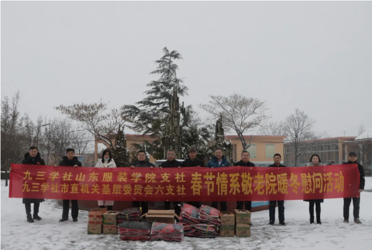 暖暖關愛心,濃濃敬老情。縱然天空飄著雪花,也抵擋不住為老人們盡一份心力的熱情。2022年1月22日,春節來臨之際,九三學社山東服裝學院支社攜手山東健源生物等愛心人士,走進樓德敬老院開展“春節情系敬老院暖冬慰問”活動,精心為老人們準備了棉衣、圍巾、新鮮水果等慰問品,希望用我們行動讓老人們感受到愛與溫暖。