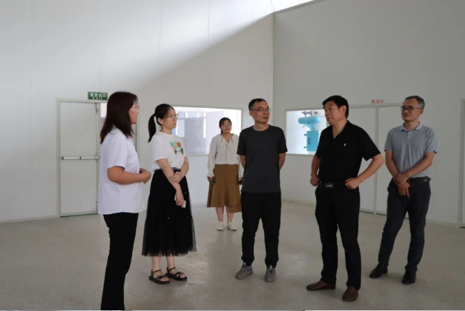 公司技術部總監李燕陪同領導們參觀生產車間、科技研發大樓等,并對廠區進行講解。