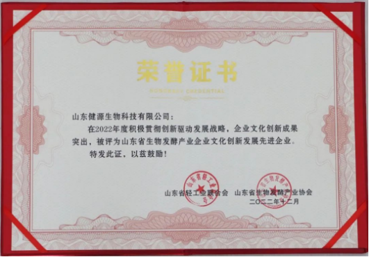 山東省生物發(fā)酵產(chǎn)業(yè)企業(yè)文化創(chuàng)新發(fā)展先進(jìn)企業(yè)