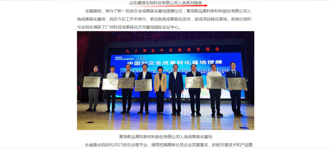 山東健源生物科技有限公司在此次創(chuàng)交會(huì)上的優(yōu)異表現(xiàn)也獲得了九三學(xué)社各級(jí)委員會(huì)的關(guān)注和報(bào)道。