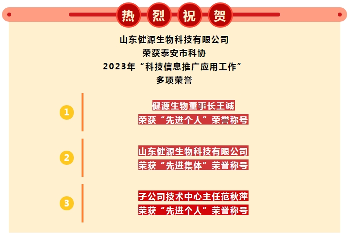 健源生物榮獲泰安市科協(xié)多項榮譽