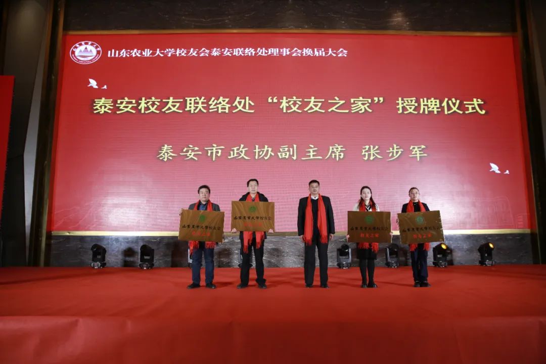 泰安市政協(xié)副主席張步軍為山東農(nóng)業(yè)大學(xué)校友會設(shè)在泰安地區(qū)的“校友之家”授牌。山東健源生物科技有限公司被授予山東農(nóng)業(yè)大學(xué)校友會“校友之家”單位。