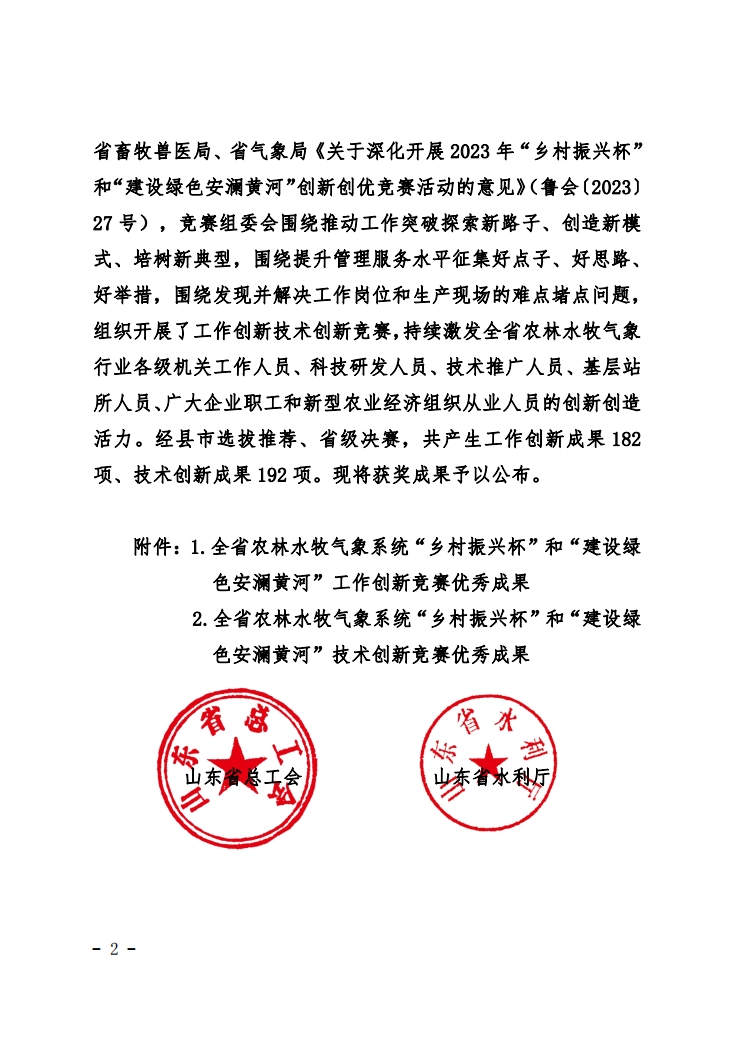 本次競賽活動是根據(jù)《關(guān)于深化開展2023年“鄉(xiāng)村振興杯”和“建設(shè)綠色安瀾黃河”創(chuàng)新創(chuàng)優(yōu)競賽活動的意見》(魯會【2023】27號),競賽組委會圍繞推動工作突破探索新路子、創(chuàng)造新模式、培樹新典型,圍繞提升管理服務(wù)水平征集好點子、好思路、好舉措,圍繞發(fā)現(xiàn)并解決工作崗位和生產(chǎn)現(xiàn)場的難點堵點問題,組織開展了工作創(chuàng)新技術(shù)創(chuàng)新競賽,經(jīng)縣市選拔推薦、省級決賽,競賽組委會嚴格規(guī)范評選,共產(chǎn)生技術(shù)創(chuàng)新成果192項,其中,一等獎33項。