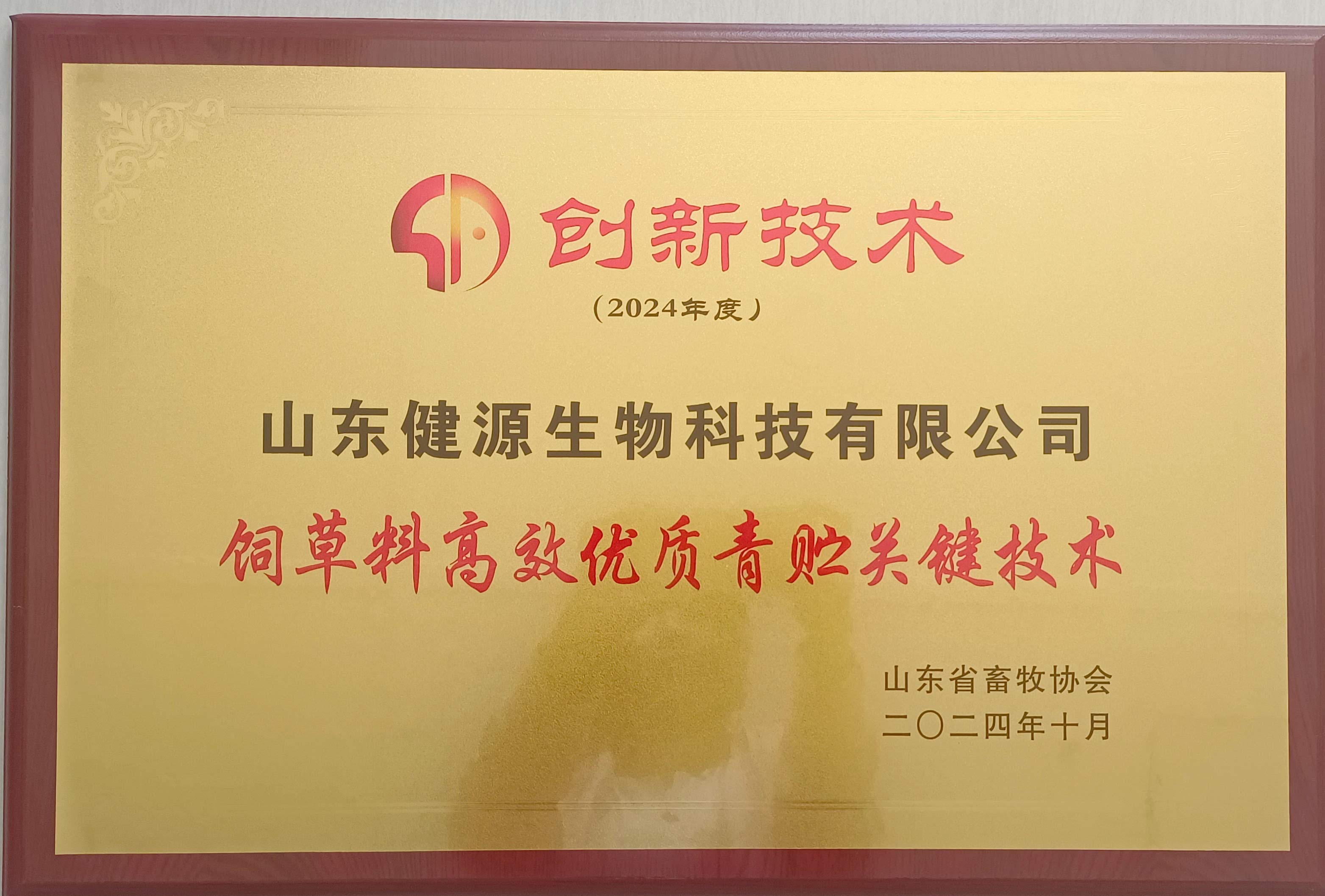 熱烈祝賀健源生物榮獲2024年度山東省畜牧協(xié)會“創(chuàng)新技術(shù)”獎