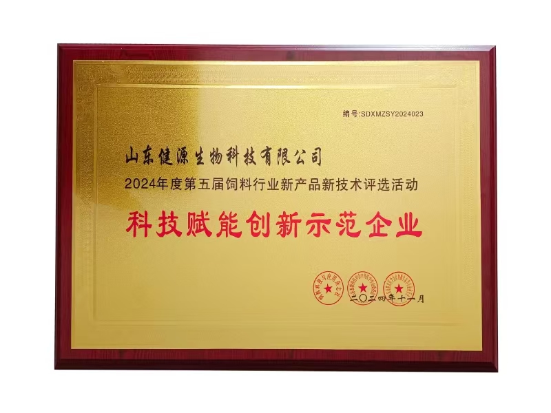 2024年11月11日-12日 ,第五屆青鳥論壇暨2024年度飼料行業(yè)新產(chǎn)品新技術(shù)研討發(fā)布推介會在濟南舜和國際酒店順利召開。會議聚集了飼料行業(yè)精英參加,共謀飼料行業(yè)高質(zhì)量發(fā)展。會后舉行了2024年度飼料行業(yè)新產(chǎn)品新技術(shù)新聞發(fā)布暨頒獎典禮活動,山東健源生物科技有限公司榮獲“科技賦能創(chuàng)新示范企業(yè)”稱號。