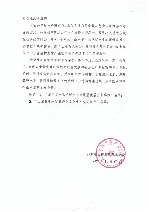 健源生物榮獲“山東省生物發(fā)酵產(chǎn)業(yè)高質(zhì)量發(fā)展出彩單位”稱號(hào)