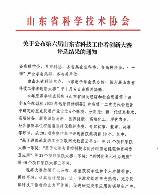 由山東省科協(xié)主辦,山東電子學(xué)會承辦的"第六屆山東省科技工作者創(chuàng)新大賽”1月6日完成總決賽。本年...