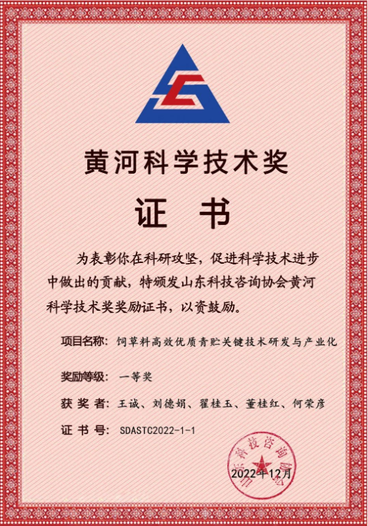 祝賀山東健源生物參與完成的《高效飼草料生產關鍵技術裝備的研發與產業化》項目榮獲2022年度機械工業...
