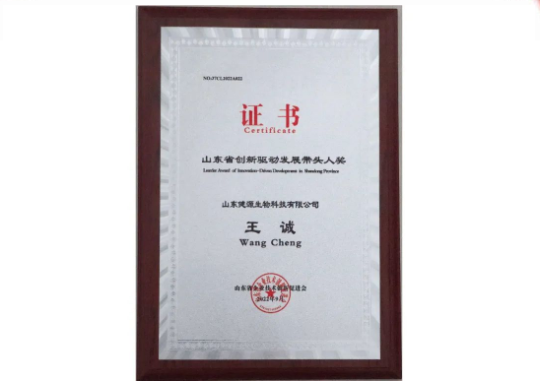 2022-10-5 山東健源生物董事長王誠榮獲2022山東省企業“創新達人”稱號