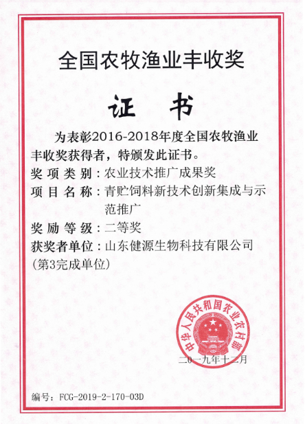 根據(jù)農(nóng)業(yè)部關(guān)于2016-2018年度農(nóng)牧漁業(yè)豐收獎(jiǎng)獲獎(jiǎng)情況的通報(bào),山東健源生物科技有限公司和山東...
