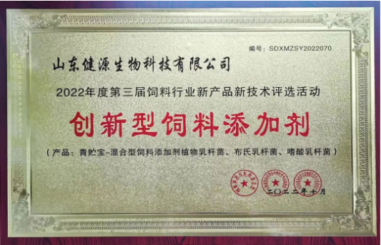 祝賀山東健源生物(青貯寶)產品榮獲“2022年度創(chuàng)新型飼料添加劑”榮譽稱號