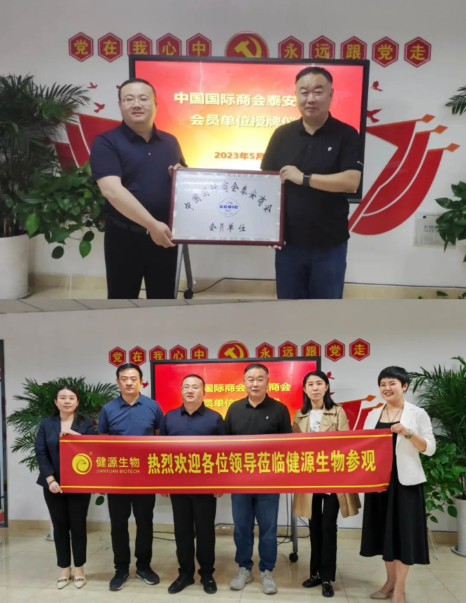 發(fā)布時(shí)間:[2023-6-28 9:19:4] 瀏覽量:4124次近日,泰安市國際商會(huì)秘書長趙傳兵一行四人專程來到山東健源生物科技有限公司參觀指導(dǎo),并授予山東健源生物科技有限公司為“中國國際商會(huì)泰安商會(huì)會(huì)員單位”。
